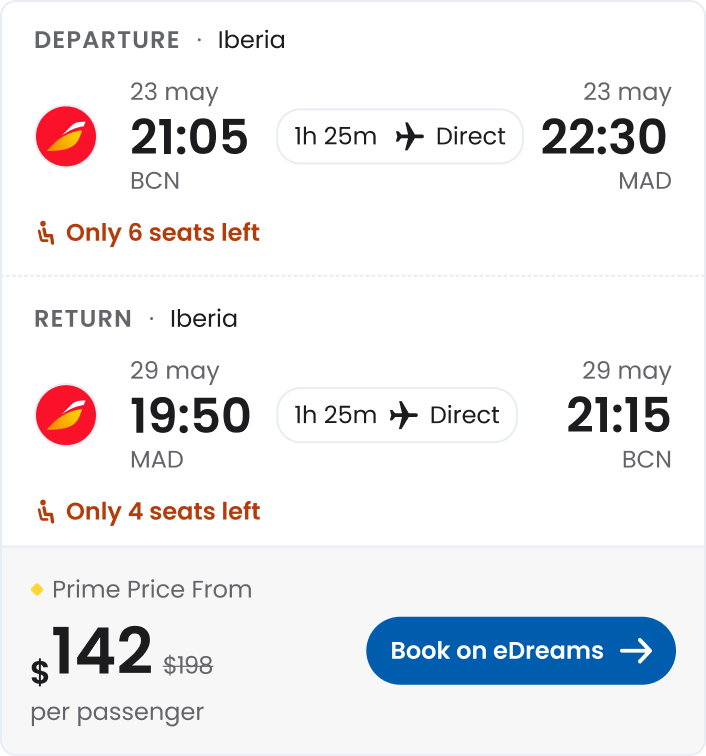 Skip the hassle of comparing dozens of tabs. eDreams helps you search and compare flights in one place, but through a simple conversation. Just tell it where and when you want to travel, and it quickly shows the cheapest and best options so you can decide faster.