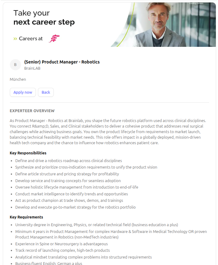 Find Your Next Leadership Role The Experteer AI Career Assistant helps ambitious professionals and executives navigate job search more efficiently. Describe your target role, seniority, industry, and preferences, and get personalized, actionable guidance to discover relevant opportunities and refine your search strategy. Use it to: * Define and clarify your target roles (titles, scope, seniority) * Translate your goals into better search criteria and keywords * Explore adjacent roles and alternative title variations you may be missing * Prioritize opportunities based on your preferences (industry, location, compensation focus, company type) * Stay organized with a clearer shortlist and next steps for your search More career-support capabilities may be added over time.