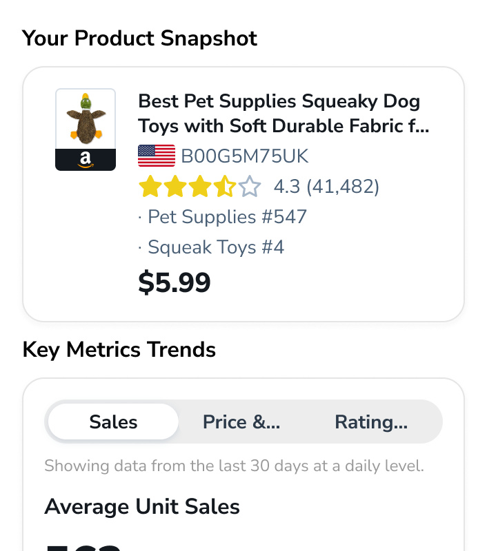 Helium 10 ASIN Insights brings Helium 10's product research data into ChatGPT — structured, visual, and action-ready. Paste an Amazon ASIN or product URL to get an instant performance snapshot: top keywords driving traffic, sales/price/BSR trends, review analysis, and a Listing Health Score with specific improvement points. Compare your product against up to 3 competitors side-by-side — see keyword gaps, pricing differences, rating comparisons, and where your listing falls short. Reports are rendered as interactive dashboards, not walls of text. Sign in with your Helium 10 account (Diamond plan or above) to unlock full reports. Free previews available for all users. Currently supports the Amazon US marketplace.