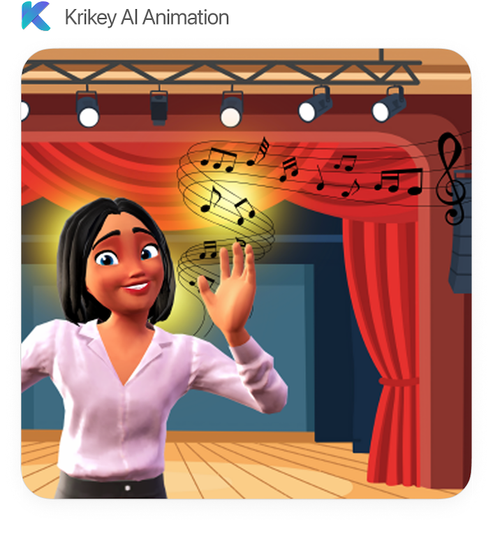 Animate Music Videos with Krikey AI Animation. Select a 3D character, a music genre, and a topic (for example a birthday card, a marketing video or a how-to tutorial), then animate your cartoon character using AI Text to Animation. Download a high-res video export and share these 3D visuals with AI-generated music, animations, anime and cute cartoon characters.